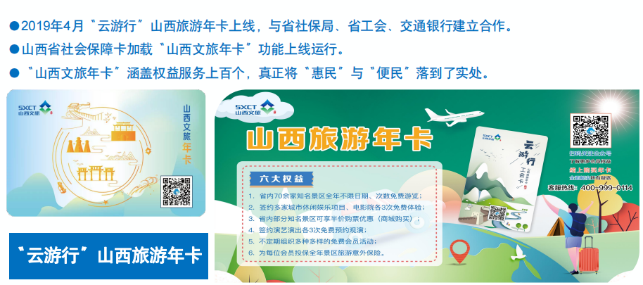 以所属山旅集团、晋中汇诚为平台公司,以“旅游景区投资开发和运营”为主业、以“文旅地产及相关贸易”为辅业,打造高水平的旅游景区投资、设计、开发、建设和运营管理集团,通过投资、规划、建设、管理以及品牌产品输出,为旅游景区及目的地提供专业化、标准化、品牌化的连锁运营服务,服务我省“国际知名文化旅游目的地”建设。目前控股、运营的景区达17个,包括国内知名景区娘子关等9个4A级景区及国际知名景区“乔家大院”。控股建设运营《又见平遥》《又见五台山》《再回相府》《太行山上》《遇见秀容》《遇见娘子关》等六大旅游演艺。推动“山西文旅年卡”成功融入“社会保障卡”体系,累计实现售卡超30万张,涵盖权益服务上百个。